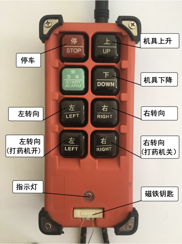 注:遙控器在使用過程中,電池的電量會影響實際控制距離,提醒用戶注意檢查,及時更換電池(2節(jié)五號電池),長時間不用應將磁鐵鑰匙取下,避免跑電。