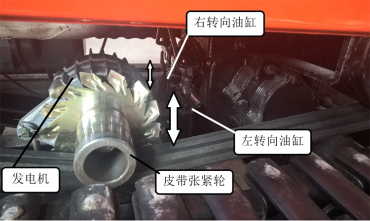 注意:左、右轉(zhuǎn)向油缸頂桿單獨推出,控制左、右轉(zhuǎn)向;同時推出為臨時停車;直線行走時油缸收回;調(diào)整發(fā)電機拉桿漲緊皮帶。
