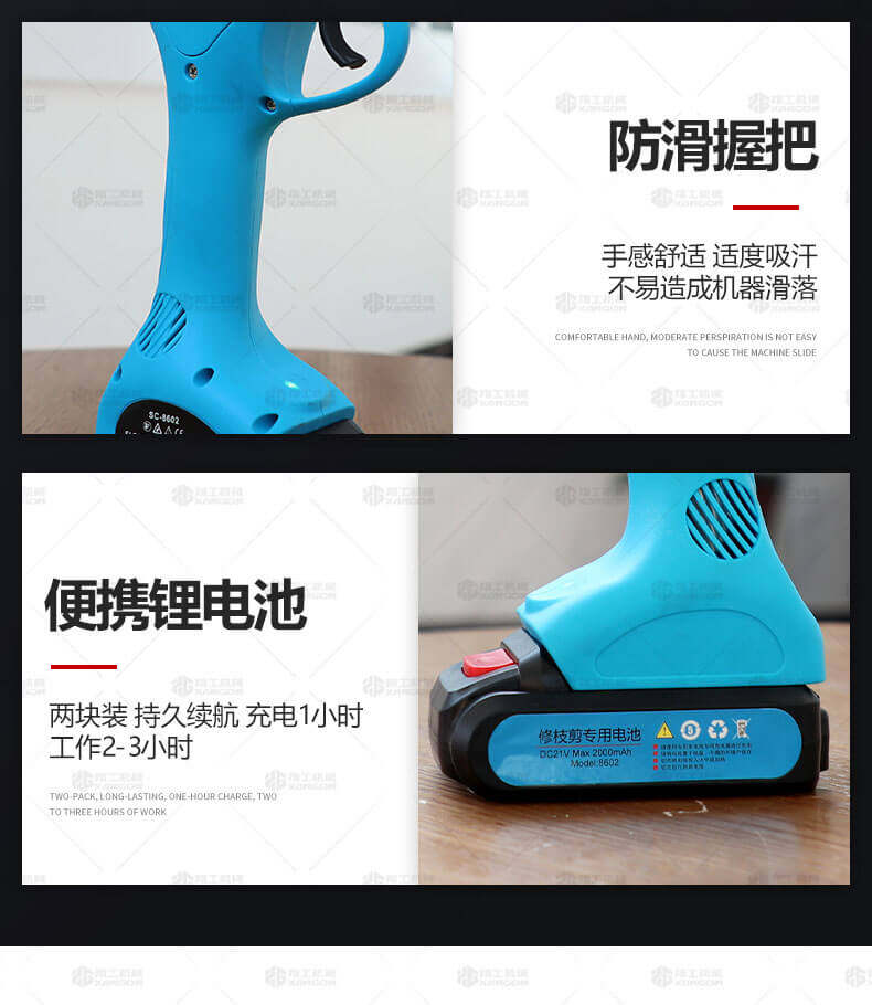 電動(dòng)修枝剪的使用大大提高了植物的修剪效率,降低了修剪工的工作強(qiáng)度,大受人們的喜愛(ài)。滿足了當(dāng)今社會(huì)簡(jiǎn)單輕巧的工作方式,一把小小的電動(dòng)修枝剪不傷手,一年四季均可以使用,解決寒冬酷暑高強(qiáng)度工作的傷害,電動(dòng)修枝剪有多種選擇,這是一款無(wú)線的電動(dòng)修枝剪,使用更加方便。