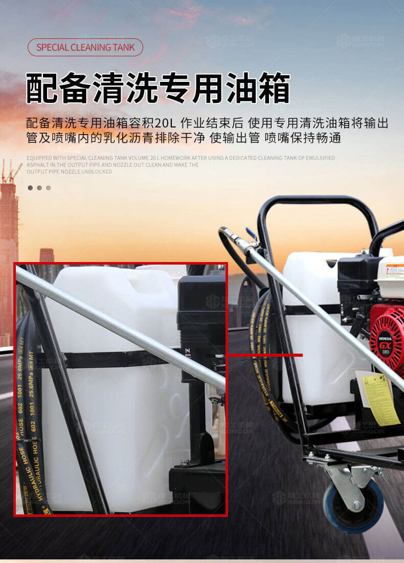 小型乳化瀝青撒布機(jī)用于修補(bǔ)瀝青道路上的坑槽,裂縫或?qū)磳⒗匣穆访孢M(jìn)行表層噴層修復(fù)翻新,由于在養(yǎng)護(hù)瀝青道路時經(jīng)常需要對路面均勻噴灑乳化瀝青或防水材料。