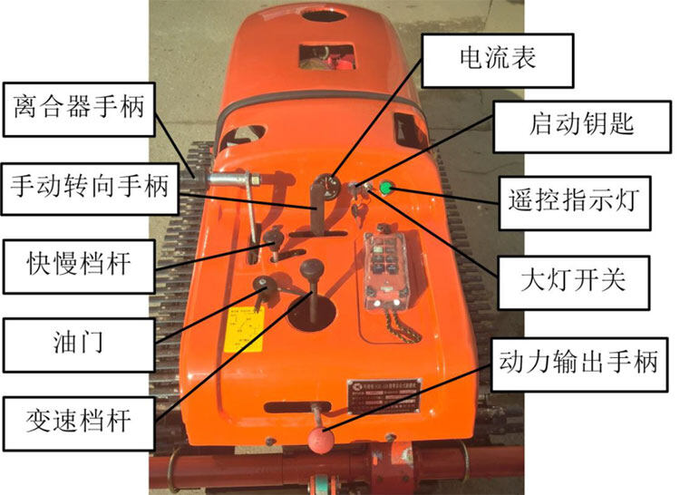 注意:左、右轉(zhuǎn)向油缸頂桿單獨推出,控制左、右轉(zhuǎn)向;同時推出為臨時停車;直線行走時油缸收回;調(diào)整發(fā)電機拉桿漲緊皮帶。